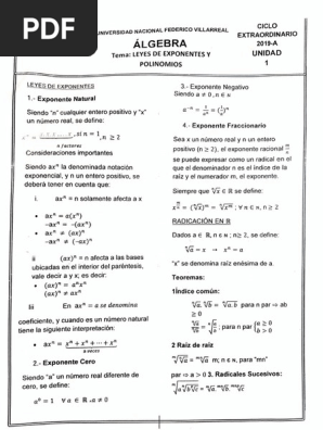 Algebra Parte 1 Pdf Division Matematicas Exponenciacion